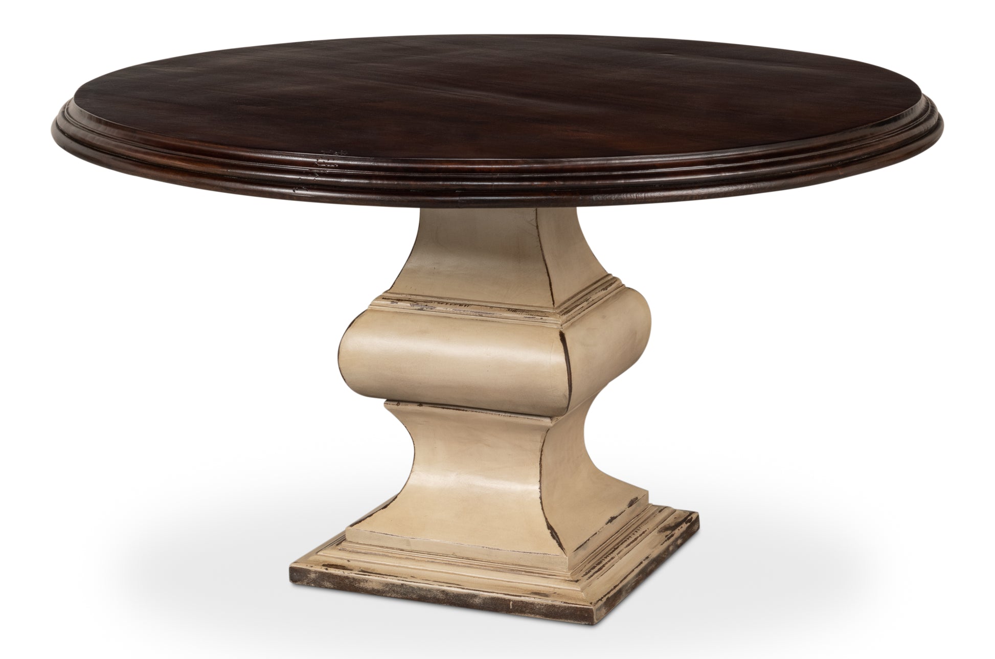 Introducing the Elias Dining Table – Anchored by a strong architectural foundation in a neutral tone and completed by a generous 54" top in complementing earth tone, the Elias dining table calls guests to linger around amazing meals and conversations. The warm earth tones of this special dining table allow it to be the star of any dining area or the perfect complement to an already well appointed space.