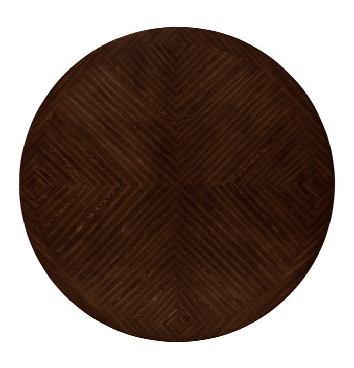 Introducing the Hartford Dining Set - People love round dining tables and Hartford presents a wide range of choices for this shape table. The conversation will just seem to flow around the table with this 72-inch table. The deep espresso finish and red or brown leatherette chairs offer a great choice for any transitional dining area and the optional Lazy Susan makes serving a breeze.